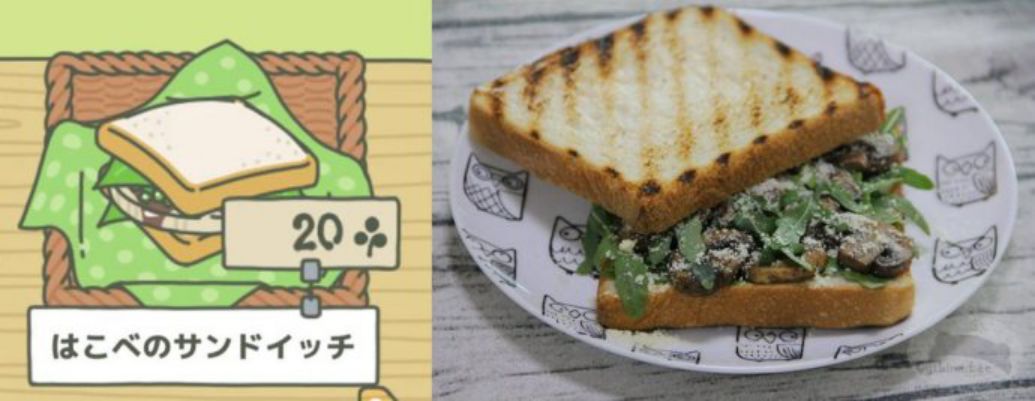 三明治就更简单了,不过商店里贩售的版本用到的是繁缕,这个季节的帝都实在是买不到,所以就改用了芝麻菜、蘑菇,从口味上,会比清淡七草系列来的要好。