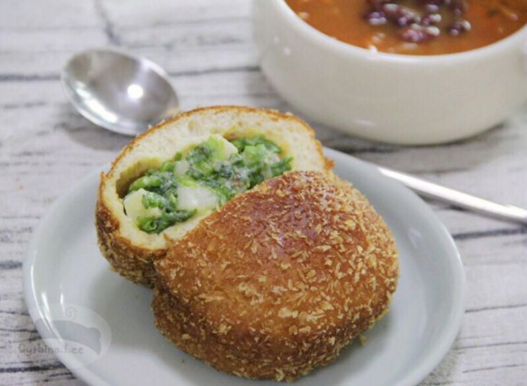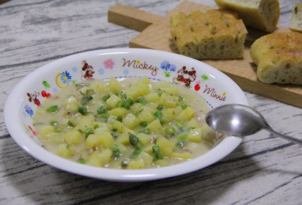 我呱一回家就吃个不停的这一盆,好多人都觉得是炒饭,但在我看来明明就是奶油蔬菜浓汤,出门在外都只能啃干粮,回家了还不得整口热汤喝?香浓的马铃薯芦笋浓汤,适合搭配法棍或者清爽有嚼劲的面包,比如之前的香草佛卡夏就很不错呢。