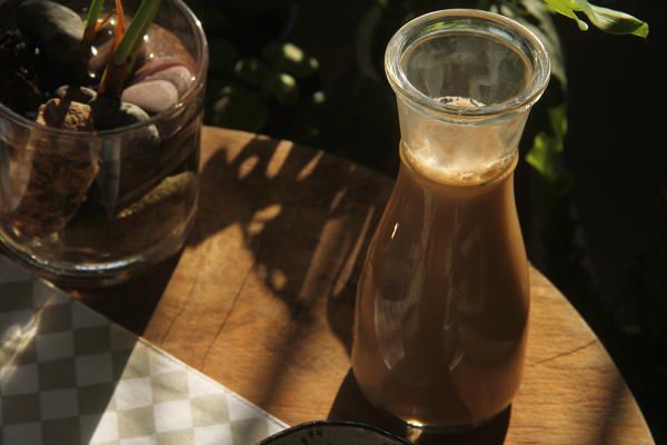 其实,还有一种偷懒的奶茶做法:先在杯底倒上薄薄一层淡奶油,或者纯牛奶(最好不要用脱脂的),然后冲入泡好的热茶汤,茶汤比清饮的浓度稍微浓一些就好,再根据个人口味加糖。如果用纯牛奶需要比淡奶油多一些的用量,茶汤的种类和浓淡根据口味选择就好啦。