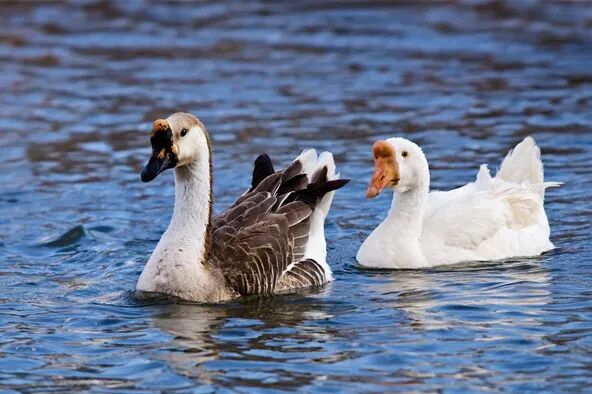 我们熟悉的家鹅,一般说来是由两种野雁驯化而来。其中,欧洲家鹅是从一种叫“灰雁”的野雁驯化而来;而中国家鹅的祖先则是“鸿雁”。两种家鹅最常见的是白色型,当然也有保留了和野雁相似的原色型家鹅。