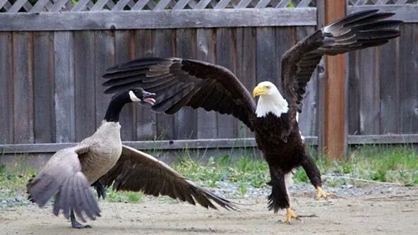 加拿大雁斗白头鵰 图:Flickr.com