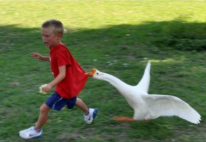 一只家鹅的战斗力能顶得上2个成年人,很多人小时候都有过被鹅追着打的惨痛经历。