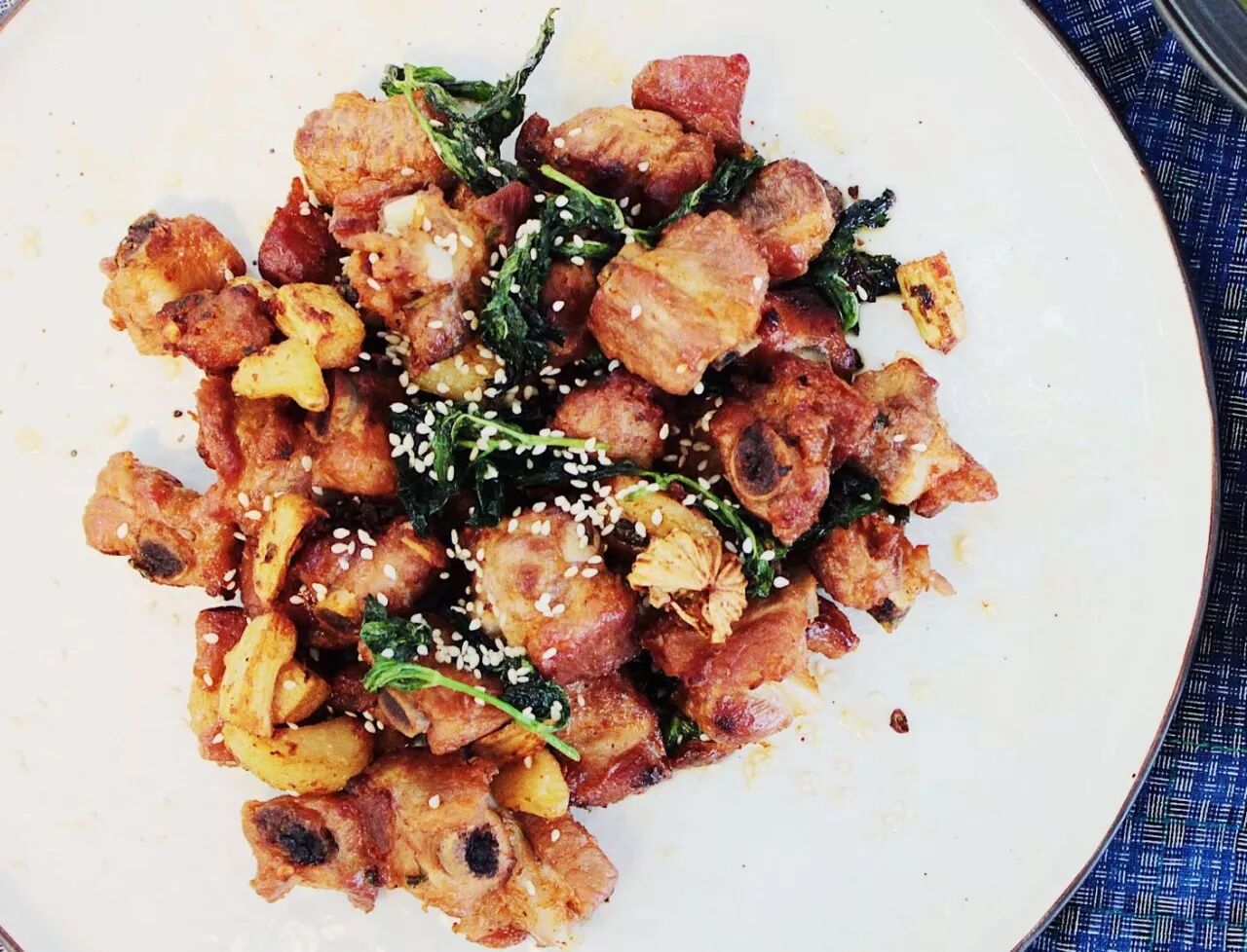 除了云南全省都能见到的薄荷,还有一种让人要么爱得深沉要么恨得咬牙的香草:鱼腥草(Houttuynia cordata)。它也叫折耳根,在整个西南地区都很常见,也是云南菜中很常见的东方香草,当地人已经习惯它作为一种普通蔬菜存在,既可以炒菜做汤,也可凉拌配菜,甚至还可以腌渍做成酱菜,几年前我吃到过腊八蒜泡鱼腥草,味道非常好。在云南当地,鱼腥草吃的不仅是根,还有其茎叶,汉族餐厅常见鱼腥草炒腊肉、鱼腥草拌猪舌、鱼腥草腌黄瓜等;彝族烧烤店会用鱼腥草做烧烤蘸水的湿碟,用来解油腻;傣味餐厅,则是用烤熟捣烂的树番茄和切碎的鱼腥草混拌,酸辣入味;还有用水豆豉加上酸腌菜拌鱼腥草,如今也已经是很多云南餐厅的常见菜了。