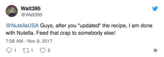 朋友们,在你们“升级”了配方之后,我就要抛弃Nutella了,把这样的垃圾玩意儿喂给别人吧!