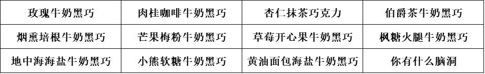 最后,我们想做一个小调查,你还想尝试下面哪些超级脑洞的巧克力呢?