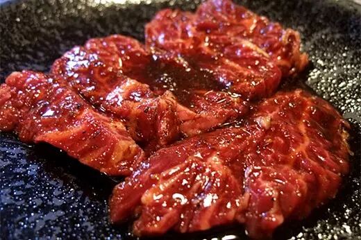 最能体现和牛本色的做法就是【烧肉】,有说法认为日式烧肉其实源自于韩式烧烤,但这不重要。用于烧肉的牛肉通常有两种处理方式Galbi(カルビ) 和 Bulgogi(プルコギ)。Galbi是指不经过任何调味的生鲜肉,炙烤后蘸酱料食用;Bulgogi是将牛肉事先调味腌制好,通常不需要再蘸酱料。