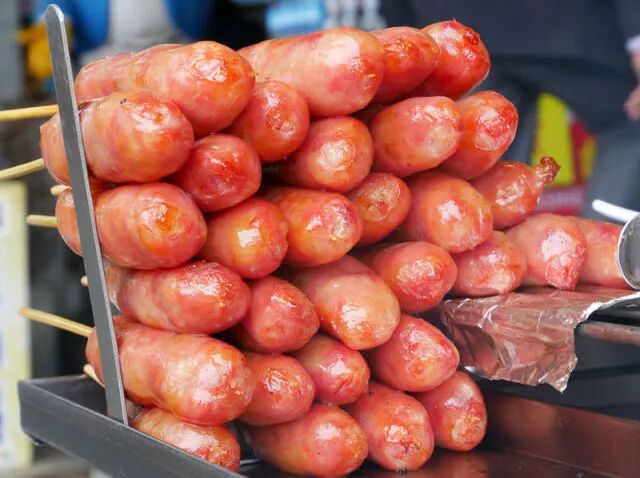 烤肠!每次经过烤肠摊,总是不自觉就放慢了脚步,实在太香了!如果刚好是大冬天吃上一根冒着热气流着油的烤肠,就算下一刻让我去死都没有遗憾了。——cici