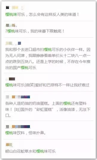 昨天所长盘点网友选出的“看着好看吃起来却像SHI”的食物(请戳左边蓝字复习)时,很多人对樱桃味可乐这种饮料表达了自己“强烈的”感情: