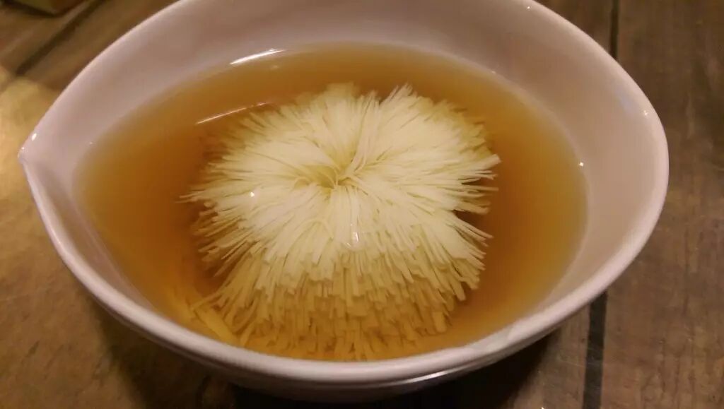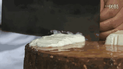 豆腐是极为寻常廉价的食材,但它水嫩的质感是炫刀功的好材料,所以也够格出现在豪华宴席上,千页豆腐和菊花豆腐便需要这般手艺。但现在酒楼都用模具代替,只需一压便可完美切开,这道菜也失去了最初的意义,成了流水线上生产的一个花瓶。