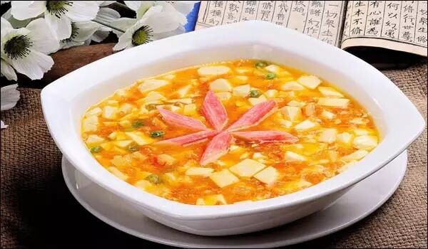 豆腐与其他水产品也是绝配组合,江南的蟹粉豆腐、广东的豆腐斑腩煲等菜式早已火遍全国。苏杭人做蟹粉豆腐用昂贵的秃黄油烹制,初中吃这菜时觉得真奢侈,够换我半箱薯片了。除了蟹粉豆腐,现在许多餐厅还有“蟹黄豆腐”,但这道菜却与蟹没有半点关系。大闸蟹取之不易,人们就想出了用咸蛋黄模拟蟹黄鲜味,再加入蒸熟碾压成末的豌豆,勾芡成糊。我竟更喜欢这个版本,拌着米饭特别香。品尝这道菜必须趁热,上菜时最好跟着个酒精炉加热,这样才能吃出粉末在口腔翻滚的快感。
