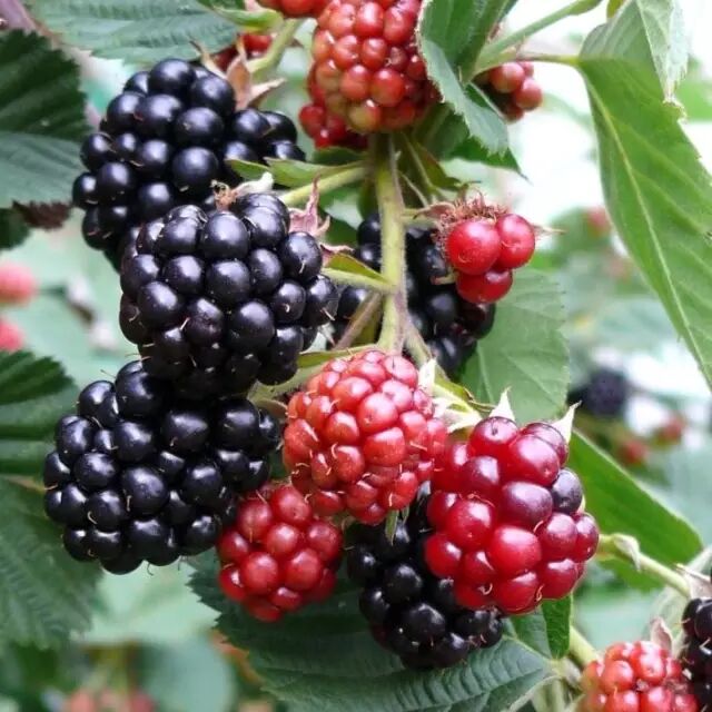 大家都知道悬钩子属是刺很多的攀缘灌木,吃它的果子要冒很大风险,换句话说就是采摘成本极高。于是黑莓的育种目标除了提高产量,还要顾及另外几点。一是无刺,这个已经实现了,现在的商用悬钩子品种都是无刺或者刺极少的。二是能直立,这样可以减少搭架子的成本。三是改变繁殖节律。黑莓的新生枝条,第一年是不开花的,只长叶子和伸长;第二年时,侧芽长出短枝并分化出花芽,这才能结果。这个特性相当浪费时间,如果当年生枝条可以开花结果,就能大大减少种植成本。通过杂交,人们已经实现了这个性状改良,所采用的亲本就是另一种重要的悬钩子属果树,红树莓Rubus idaeus。