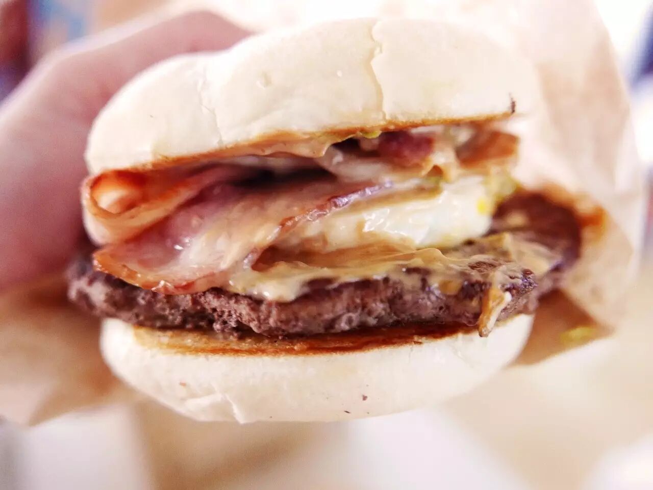 牛肉扎实,蛋很顺滑,培根香气很足。这个汉堡一定非常好吃,不然为什么所长只吃了一口还没来得及仔细体会味道就已经被旁边的坏同事抢走了呢?呜呜呜,一会下班还要再去吃一个!