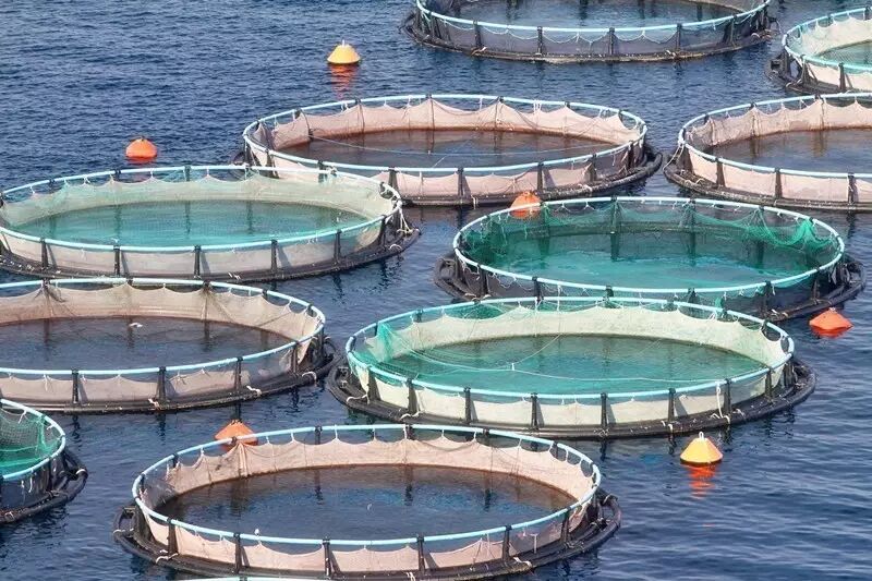 三文鱼养殖箱上的防鸟设施。图:123rf.com.cn正版图片库