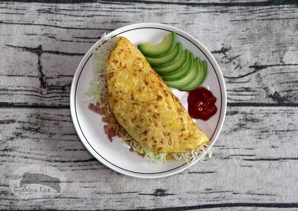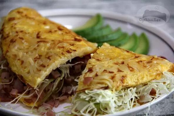 因为外形上cos了Taco,所以在口感上也要模仿一下啦,这里将一面尽量烤脆了,使其多少有一些脆饼的感觉。不过最后蛋液的加入,使其保持了一定的厚度,整体还是柔软的啦~
