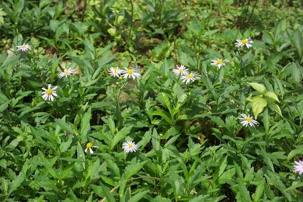 7月中旬梅雨过后,太阳重新照耀到河岸湿地,曾经丛丛小草的马兰也长到一尺多高,阳光的照射促使马兰开始开花了。马兰的花朵形似菊花,乍看是一朵花,其实这朵“花”是由众多小花组成的:外部淡紫色如花瓣一样的是舌状花,中心那些像小管一样的黄色管状花则形如花蕊。这种聚合在一起的花称之为“头状花”,这样奇特的结构也是菊科植物的标准特征之一。