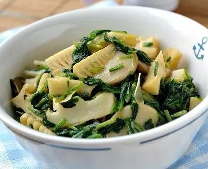 马兰春笋炒菇片。图:豆果美食网友月亮晶晶