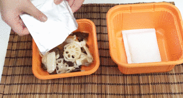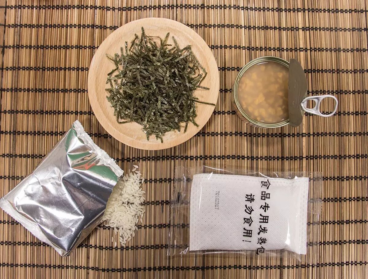 制作过程:加热包撕去包装放入底层注入凉水;将米饭倒出,加水没过米饭;将米饭置于加热包上层。