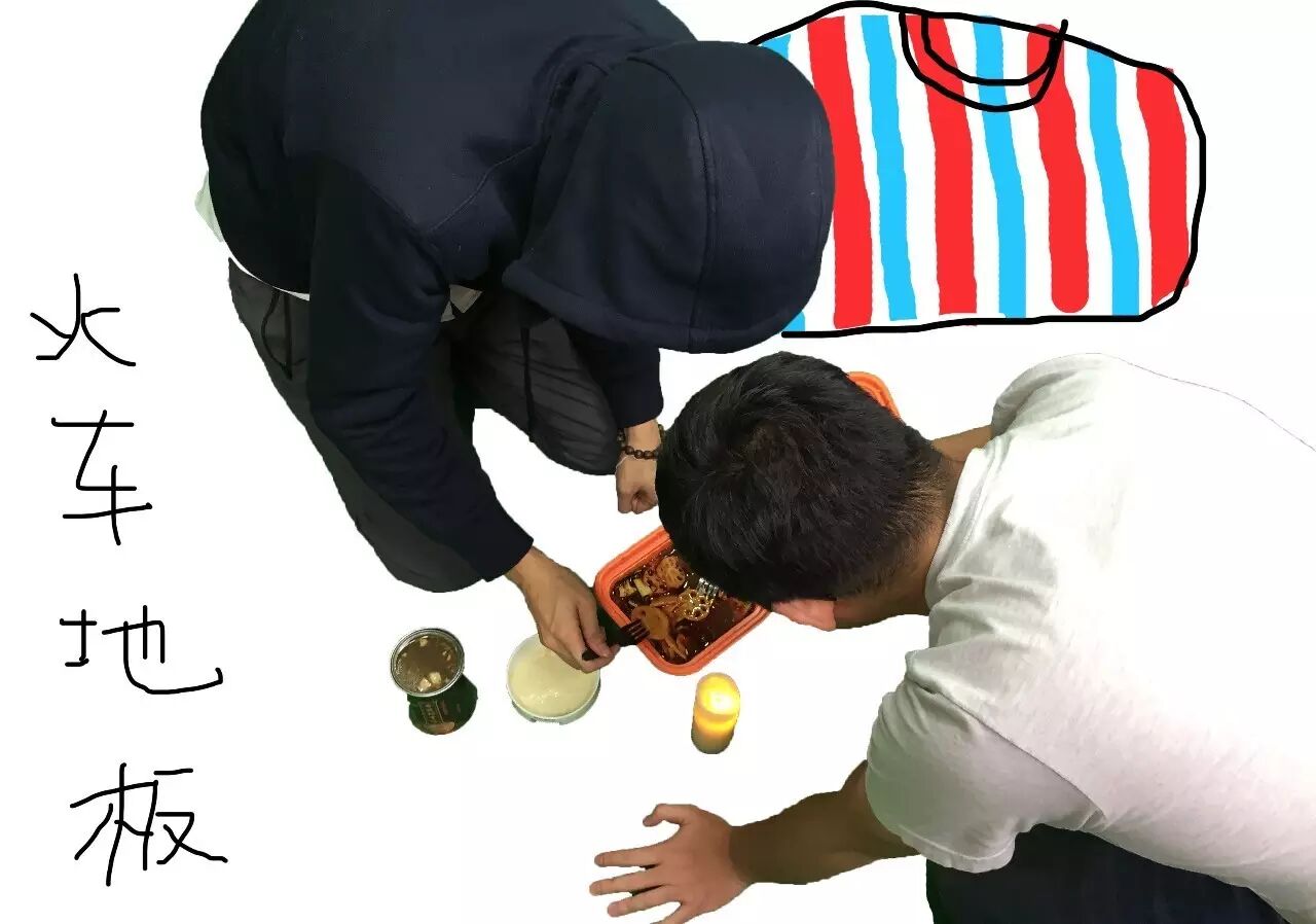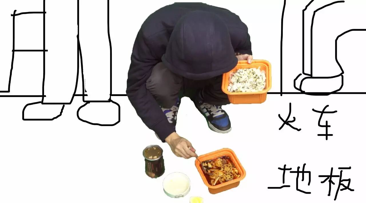 如果你没有抢到坐票,别灰心。票是站着的,但是生活也不能将就。蹲着吃一样可以成为整节车厢的焦点!