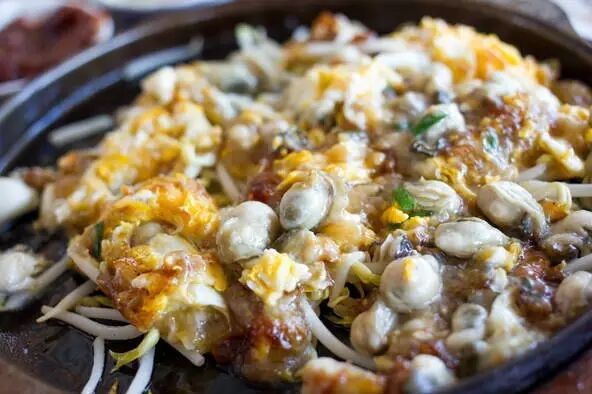 生蚝当然也适合做熟了食用,比如常见的炭烧和清蒸,烹饪的关键就是让它不要过度缩水。牡蛎和混合木薯粉加水一起煎制,并加入蔬菜、鸡蛋,并佐以酱料就是我国南方地区的特色小吃蚵仔煎。