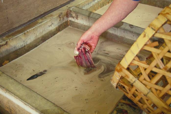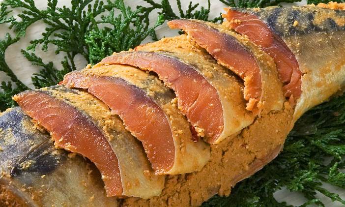 大米饭是重要的主粮,古代的平民都不一定能天天吃到,更不用说拿来保存鱼了,所以发展出了原理类似的腌渍材料——米糠。用米糠腌咸菜在日本是很普遍的事,一些地区还会用它来腌鱼。具体的做法是把鱼先用盐渍去除一些水分,然后埋在加了辣椒的米糠里用大石头压着发酵,过个一年半载再拿出来吃,由于发酵过程需要夏季高温高湿,所以流传的地域不是很广,其中的典型是糠渍沙丁鱼、鲭鱼和河豚卵巢。