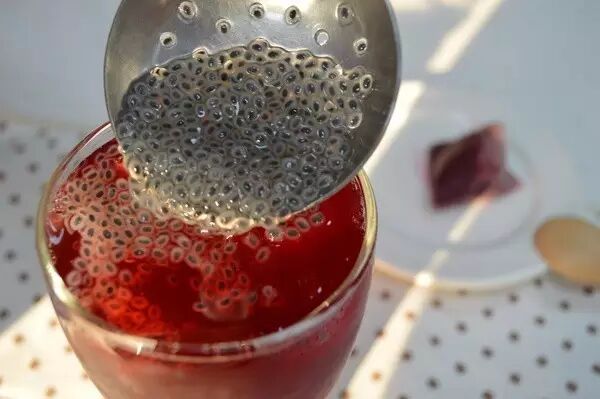 加在饮料里的奇亚籽。图:cook.sub.tw