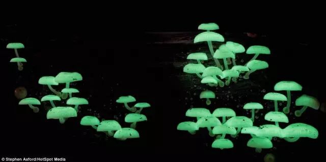 夜晚会发出荧光小菇Mycena chlorophos。图片:见水印