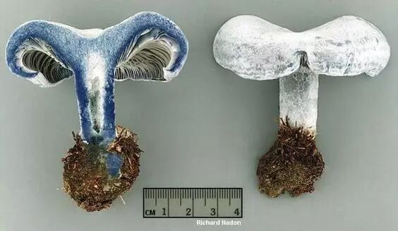 霍氏粉褶菌和它的蓝色色素。图片:sporsmouldandfungi.wordpress.com