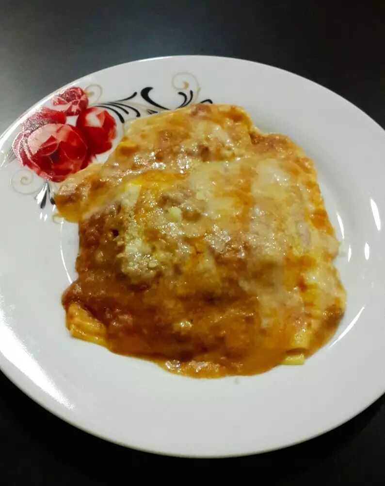 但是如果菜品卖相真差成这样,就放弃拍摄好了,况且这家店的光线也严重不足(此片后期提亮过)。这照片拍完了都不知道是什么菜,这家千层面做得太丑了。