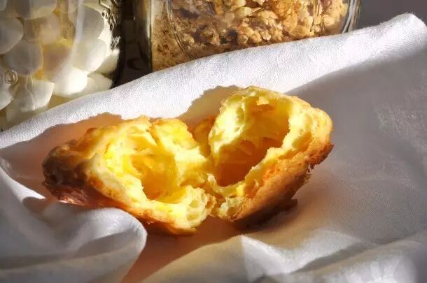 制作“跑得瘸脚”关键在于木薯粉。木薯粉本身没有什么味道,加入其中的奶制品的香气被突出到最大化,木薯粉自身低热量的特点也降低了食物综合的热量,奴隶饭时期不含蛋白质、不含麦麸的“缺陷”也成为它被过敏体质者推崇的“优点”,出现在巴西日常早餐和小吃里,气质上一点都不输它的法国远亲。