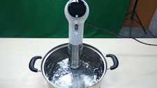 低温慢煮的关键就是保证对温度的控制,创始人胡坤提到他的目标是保证正负0.1度的精度。果壳实验室在试用的过程中发现0.1度的精度还是比较难达到的,在对整锅水全方位的测温后得到正负0.3度的温控精度,除了鸭肝等对温度极端敏感的食材外,在实际操作中,正负0.3的温差对食材口感的影响并不明显。可能这还是第一代产品吧,出水口只有一个。国外类似产品四个方向各有一个出水口,保证了水的流动及均温效果。