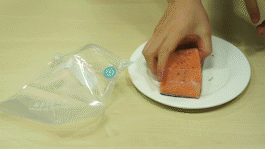 如果想DIY自己的食谱,商城提供的真空抽空机和真空密封袋价格和实用性上还是不错的。果壳实验室在料理三文鱼的时候就将提前调味好的食材放入真空袋中抽空空气,再放入锅中低温慢煮,口味非常不错。