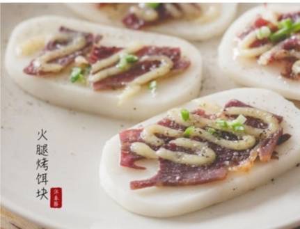 做法:饵块切厚片,抹上由红白两种味噌调制的抹酱,洒上芝麻或是海苔末,烤软之后即可。
