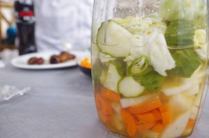 烤前准备:将泡菜混合肉片,以酱油和一点点甜辣酱调味。