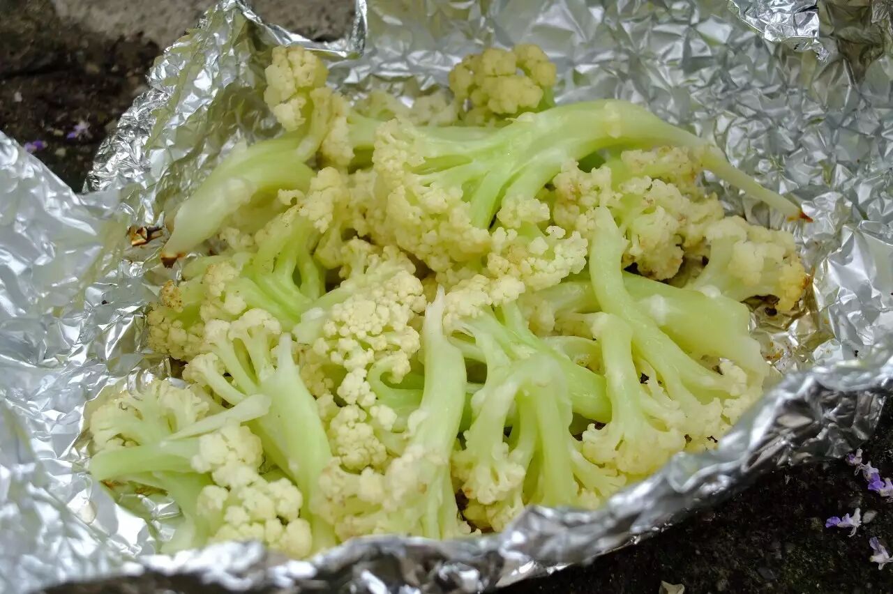做法:一道超级简单的烤菜。将花菜洗净切大块,洒上盐和黑胡椒,再洒上马苏瑞拉芝士,用锡纸包严实,上烤炉焖烤,等香味飘出了,即可食用。