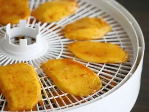 如果你有干果机:干果机设置54度,烘干10小时以上,具体时长根据个人口味调整;