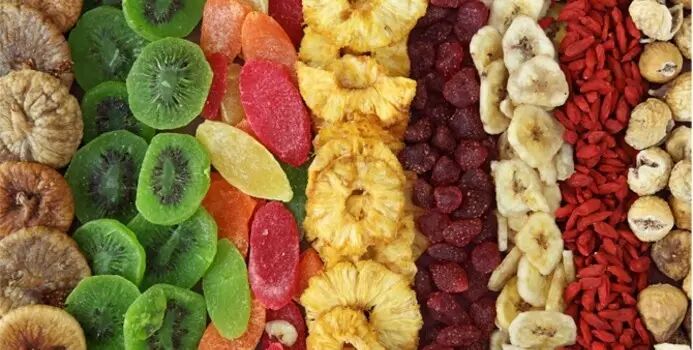水果干,就是水果经过干燥制成的产品。可以是晒干、风干,可以是红外、微波烤干,可以是真空冷冻干燥。纯粹的水果干是不加调味,也没有任何香精色素防腐剂的。干燥的过程会浓缩水果中的糖分、蛋白质、脂肪和多种矿物质,膳食纤维和一些不怕热的抗氧化成分、维生素也会被浓缩。只有维生素C、维生素B1这样比较娇气的营养素会减少。其中真空冷冻干燥既没有加热,又最大限度减少了氧气的作用,因而可以保存绝大部分维生素;而晒干时暴露在空气和阳光之下,维生素C几乎损失殆尽。红外、微波烘干方法的维生素损失则介于这两者之间。