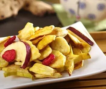 至于水果脆片,或者香脆水果,大多是真空油炸制成的,没有油,就没有香脆的口感。香脆枣、香蕉片、综合果蔬干等,都是水果脆片。有了油,就有高脂肪含量和高能量。虽然水果干脂肪含量通常只有1%左右,但水果脆片可高达10%~20%。不过,和普通的油炸食品相比,因为真空油炸的温度低于100度,而且氧气分压非常低,避免了脂肪的过度氧化,也避免了反式脂肪酸问题,安全性比较令人放心。
