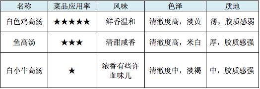 白色高汤:米黄色——饱满原味(优),近无色——寡淡白开水(劣)