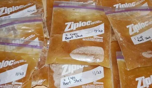 分包储存,随取随用。用合适的高汤代替水,可以给菜色增色不少,因此是很实用的厨房必备品。熬至高汤费时费力,可以一次熬制一大锅,然后250ml一袋分装到保鲜袋中,写上名称和日期,再放进冰箱,冷藏可保存3天,冷冻可保存3个月,每次用之前提前拿出解冻即可。
