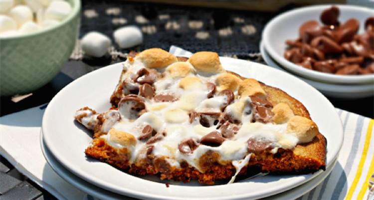 还可以做成棉花糖披萨。面底最好用做蛋糕的面团做底子。把蛋糕烤成型之后,撒上棉花糖和糖豆、巧克力豆等点缀回炉五分钟左右。等棉花糖表面金黄、还有一点“露馅”的时候,这个神奇的披萨就完工了!