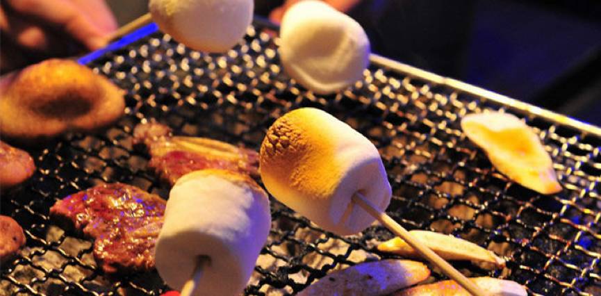 普通吃法:烤棉花糖你一定要试一下。经过一段时间烤制的棉花糖外部被烤得脱水,有些坚硬松脆的感觉,而内部则被温度烤糊,变成了泡泡。这样原本口感均一的棉花糖就具有了双重口感。非常有趣