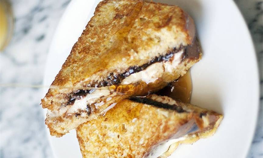 正常做一个法式吐司,然后里边放入几粒棉花糖,然后加热,烤到外表金黄,内里的棉花糖也差不多融化了。吃吧。很特别的口感。