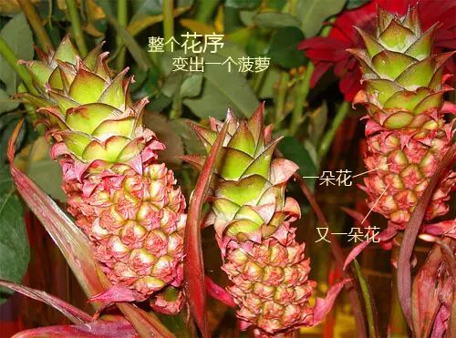 菠萝不是一朵花形成的,这是它还在开花的时候……