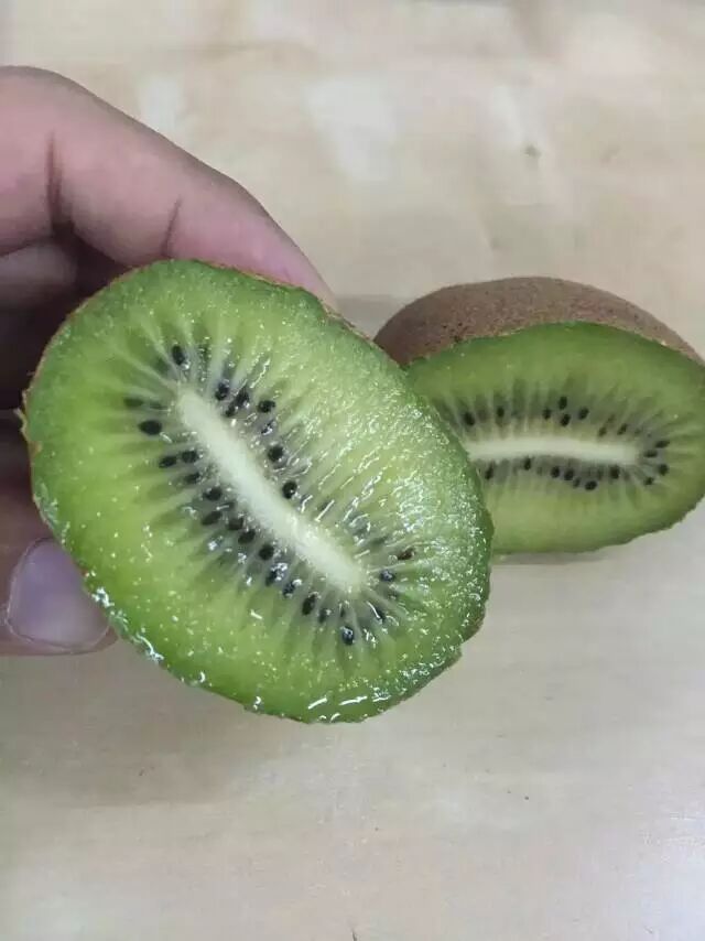 翠香猕猴桃,绿肉品种,但是味道很甜,果肉多汁细腻,扁平果子是特征。