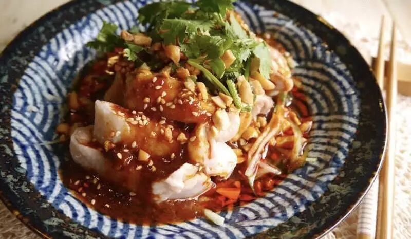 做好了这样一碗怪味汁,你就可以自由发挥啦!冷兑的怪味汁多做冷菜,用来浇、淋、拌,去腥、解腻、提味,适用本味鲜、异味小的烹饪原料,像熟的鸡肉、野味、鲜鱼类、猪舌、笋、海鲜等。至于做怪味热菜,可将兑好的怪味汁倒进锅中,和食材一起烹调入味。