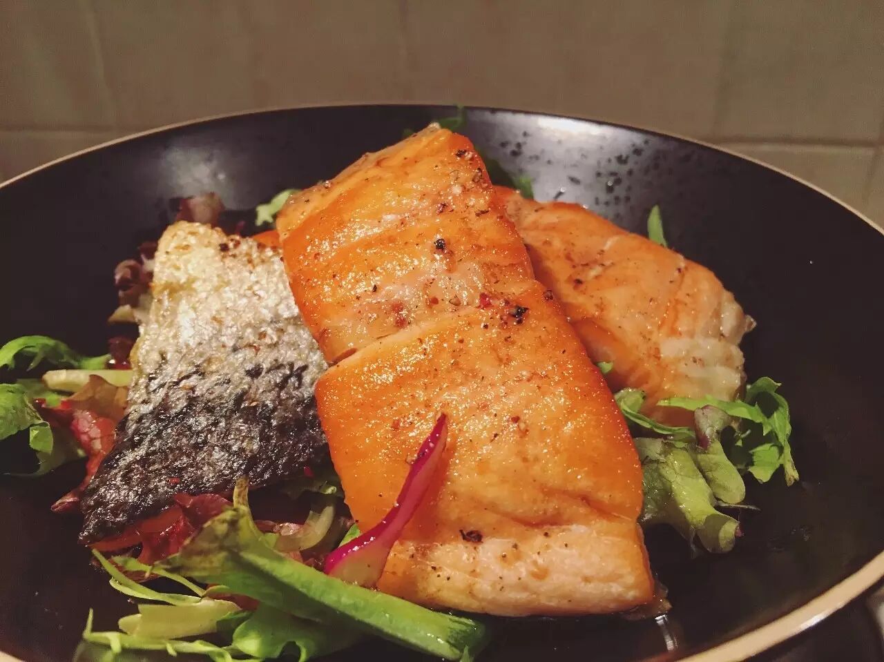 煎三文鱼时,先把鱼稍微冷冻一下,定型后再煎,不容易煎散。