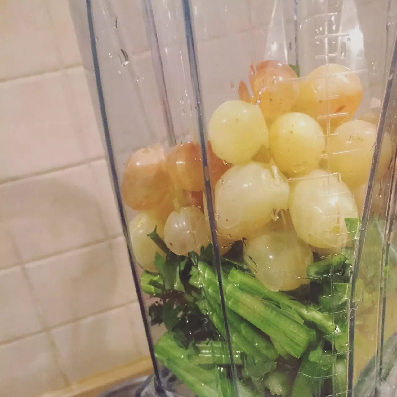 芹菜汁虽然健康但味道太奇怪,加入白葡萄一起榨就美味很多。