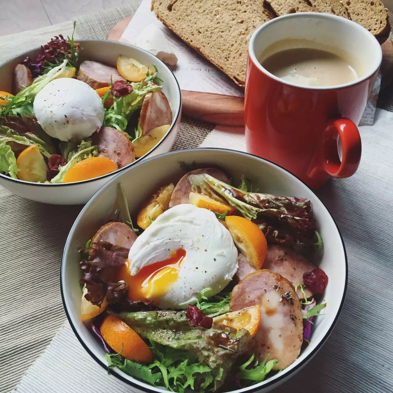 烧一锅水,放入一勺白醋,烧到水未大开,稍稍冒泡,把水搅成一个漩涡,中心打入一个鸡蛋,关小火,让鸡蛋在漩涡中慢慢凝固即可。