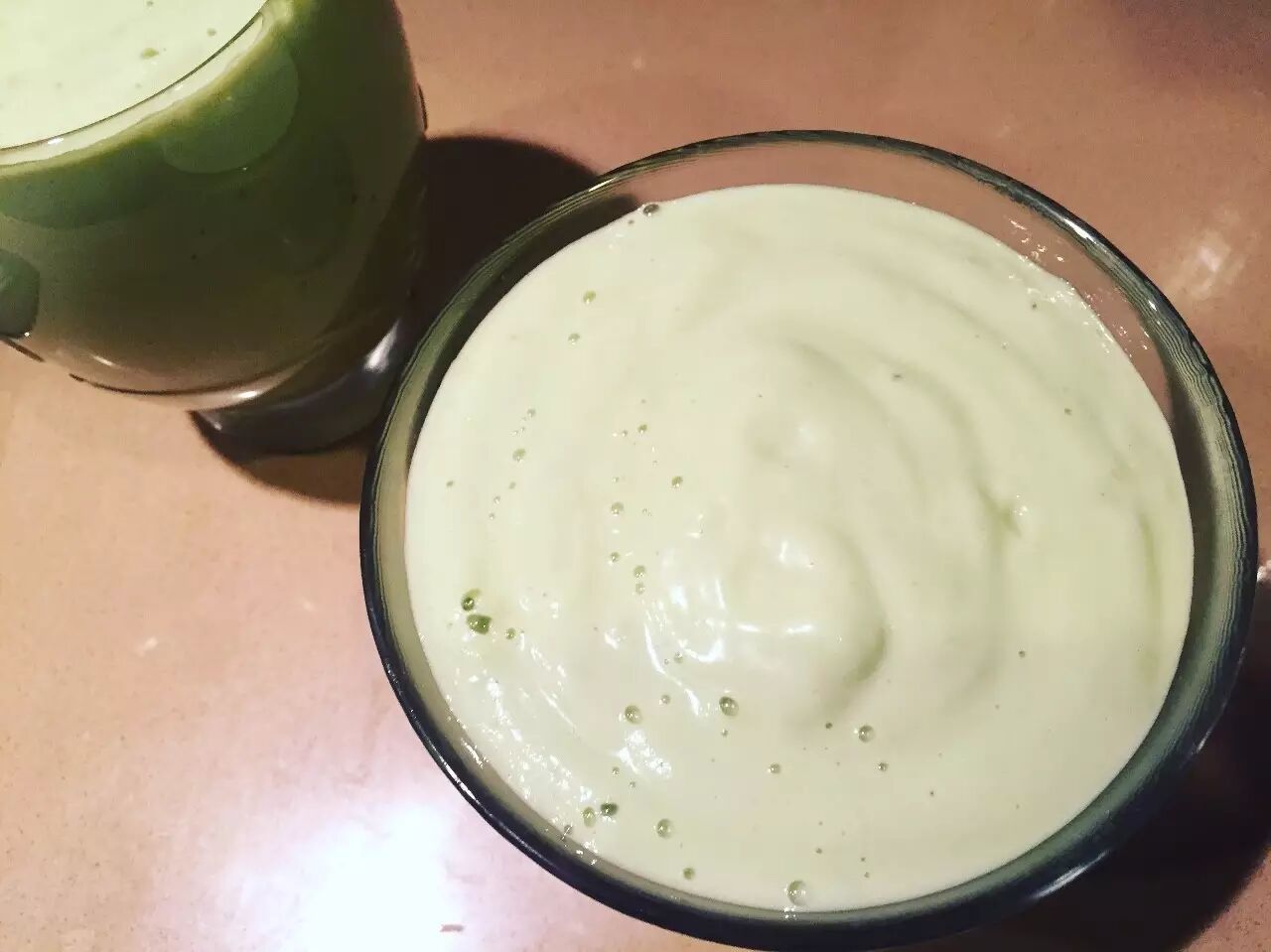 牛油果加入酸奶和牛奶一起在榨汁机里搅拌均匀,就是香浓可口的奶昔。
