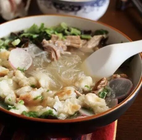 羊肉泡馍正宗的吃法叫“蚕食”,是贴着碗边一小口一小口吃,这样即使吃到最后一口,依然香喷喷热腾腾。而且,面饼需要自己掰,先掰、后撕、再掐,最后放入羊肉汤。但遗憾的是,很多地方的羊肉泡馍都已经把馍切成小丁状,泡入汤中,才上桌供食的。